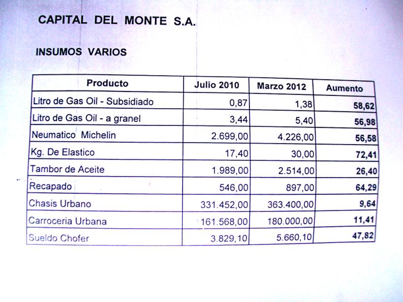 En noviembre pasado, como cada tantos meses, la empresa Capital del Monte había pedido otro aumento de boleto, que rondaría los a 2,50 pesos para el único y 0,60 centavos para el escolar.