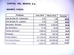Incluso, éste miércoles pasado, el empresario se presentó al HCD con algunas hojas con las que pretendía justificar su pedido. A una de ellas la denominó informe de “incremento de costos”, es un cuadro con varios item que cabe en un cuarto de hoja A4. Eso fue todo.
