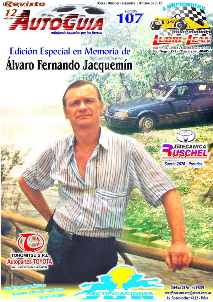 El próximo mes Autoguía cumplirá 13 años, pero no serán motivos de festejo. El 12 de agosto pasado, Álvaro Fernando Jacquemín, fundador y director de ésta revista encontró la mala fortuna de una terrible enfermedad descubierta muy tarde.