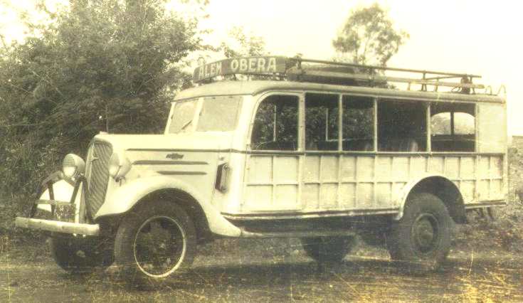 Ralf observa que cada vez mas personas le solicitan ser transportadas, en sus permanentes viajes a Posadas y localidades intermedias, sobre la carga de ese ya vetusto camión que transitaba los 110 kilómetros que separaban a la ciudad capital sobre picadas arrancadas al monte, hechas a machete y huellas de carro como únicas guías viales… y que estos “pasajeros”, polizones permitidos, viajaban soportando durante 3 o 4 horas no solo la incomodidad, sino también el sol calcinante y los caprichosos cambios del clima sub-tropical en cualquiera de sus estaciones.
