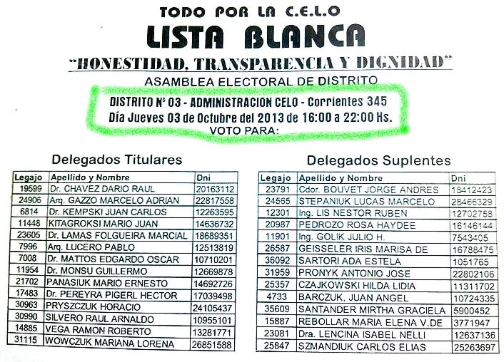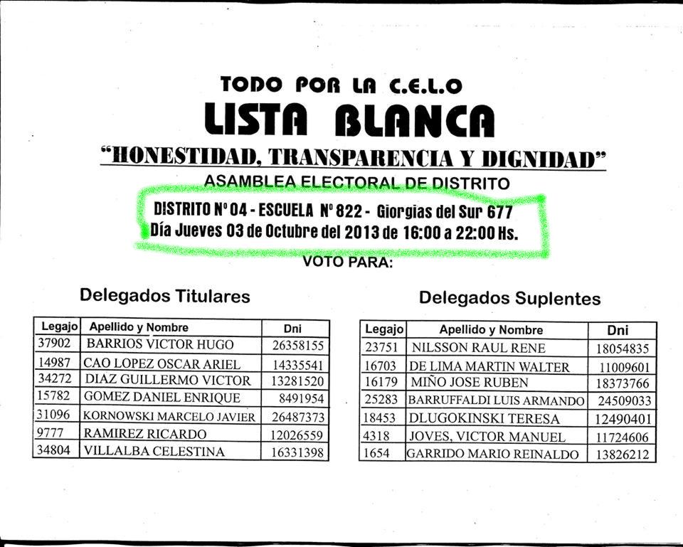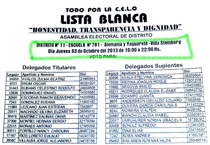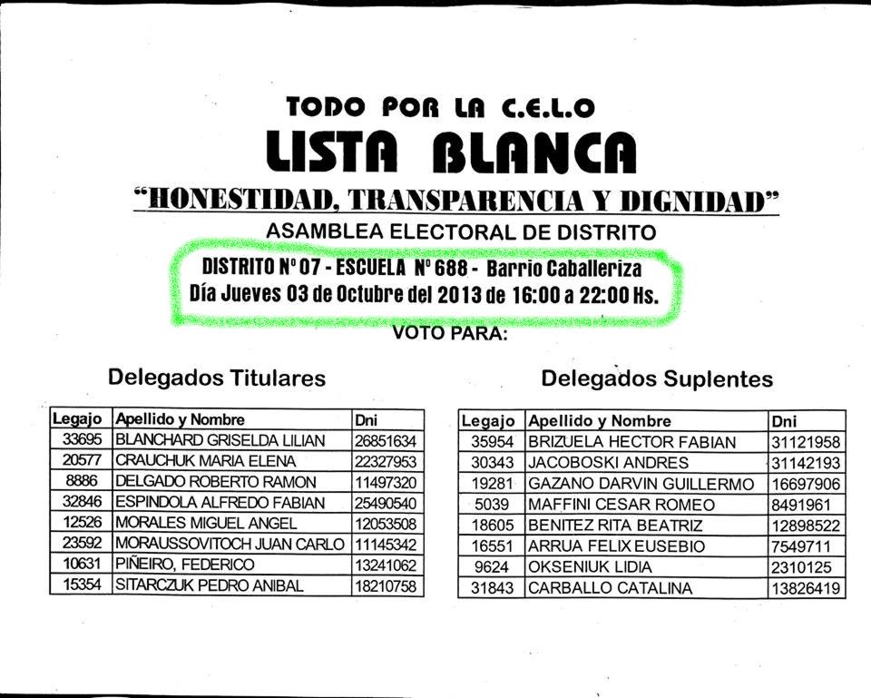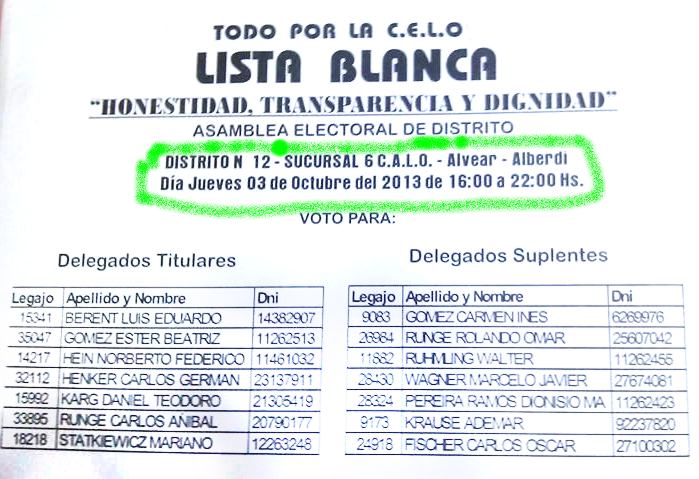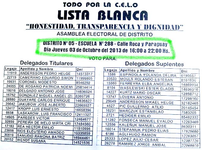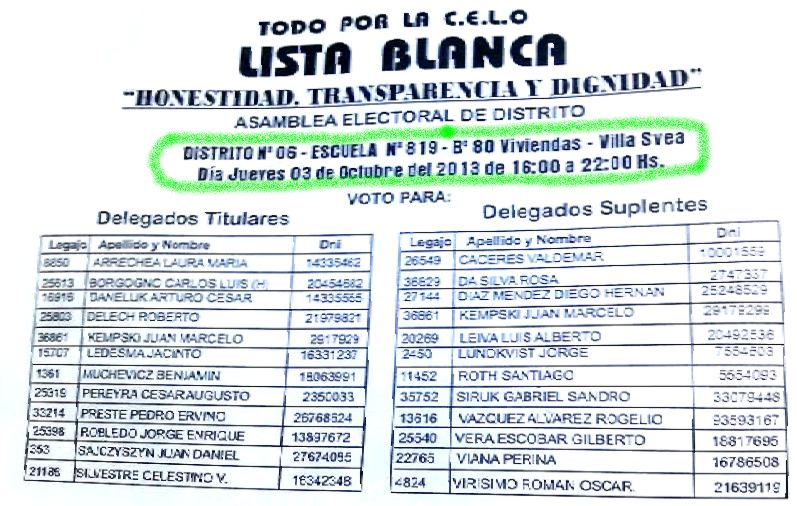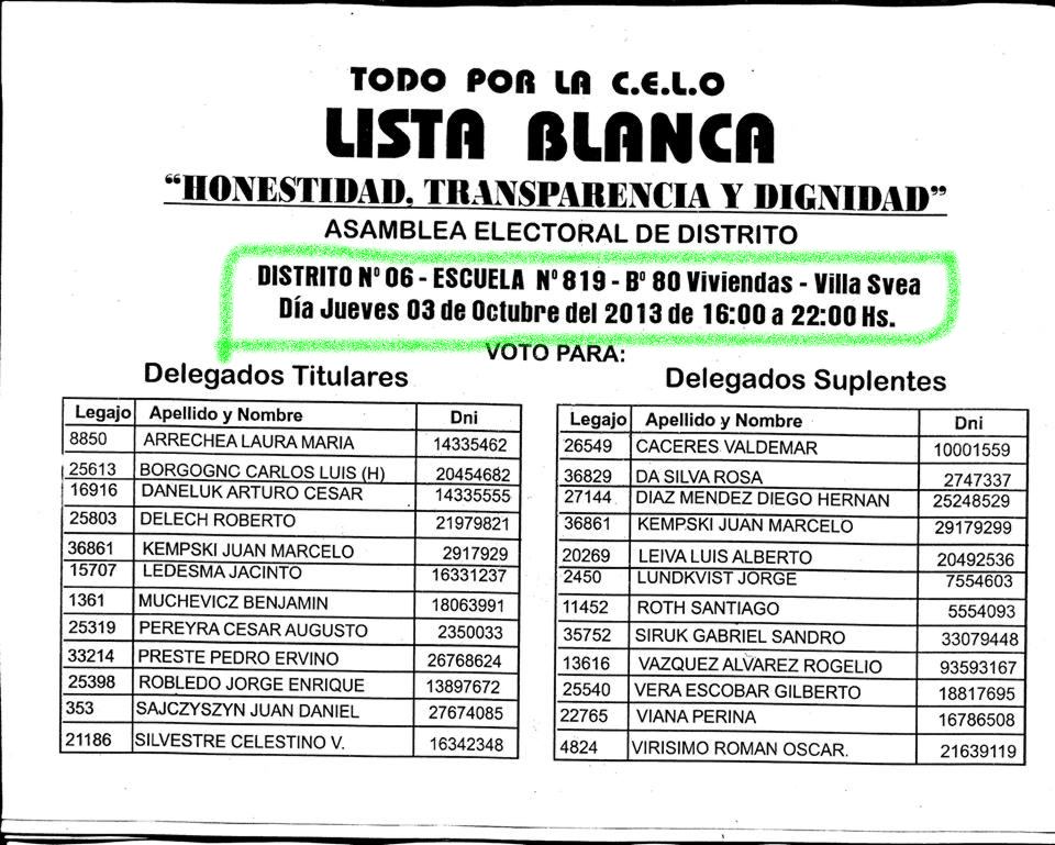 Ahora y luego de un año de no bajar los brazos reclamando y denunciando; un grupo de vecinos, de referentes sociales y de partidos políticos opositores al actual intendente finalmente se juntaron para formar una lista, una lucha encabezada casi solitariamente en sus comienzos por Rafael Pereyra Pigerl; Ramón Escobar y Patricia Ledebur; pero que ahora reúne a cientos de vecinos.Tanto el martes 24 como el pasado lunes 30, la lista Blanca se reunión para organizar distritos; listas y padrones en Club Social y en la plazoleta de la Equidad.Este jueves los socios tendrán una oportunidad de cambiar algo, luego de años de desmanejo; según expresaron integrantes de la misma; “con ganar en algunos distritos, ya se puede empezar a hablar de poner un síndico que controle y no uno que se lave las manos”.