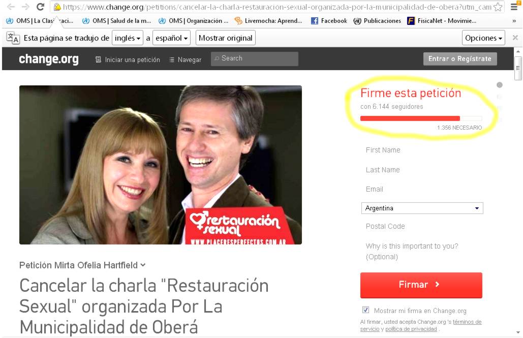 Incluso hubo quiénes, a través de Facebook, organizaron-y pasaron las siete mil-una junta de firmas para que se prohíban las charlas de los Cinalli, por “homofóbicos” y “discriminadores”.