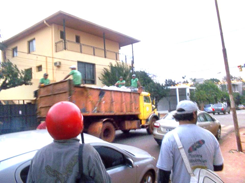 A cualquier automovilista que circule sin cinturón de seguridad, lo multan y hasta en algunos casos, dada la ignorancia de los inspectores, le secuestran el carnet o el vehículo; sin embargo el municipio lleva empleados arriba de los camiones volcadores, no solo haciendo que su trabajo sea incómodo, si no además INSEGURO. Según la misma Ley de Tránsito que pena el no uso del cinturón de seguridad, prohíbe totalmente trasladar personas sobre la carrocería de un camión. Cuando uno de estos viejos vehículos, por razones de desgastes dada su antigüedad, se quede sin frenos o simplemente se accidente, y esos empleados sean lesionados cuando no muertos, no habrá seguro que lo cubra, y será el estado municipal (todos nosotros) quienes deberemos pagar los juicios.