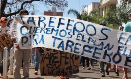 Continúa el reclamo de tareferos de Oberá, frente a casa de gobierno provincial, que ya alcanza su cuarto día sin respuestas. Los cosecheros de la yerba que son contratados en negro y carecen de medios de vida durante el periodo de interzafra, se instalaron en la plaza 9 de Julio para visibilizar su reclamo de un bono solidario al gobierno provincial. En diálogo con M4, Silvia contó que “hace cuatro días que estamos acá y entramos el martes [a la Gobernación] Nos dijeron que nos iba a dar una respuesta y hasta ahora no tenemos un comunicado de ellos. Le pedimos un bono solidario, pero todo lo que pedimos, está negado”, precisó esta tarefera.