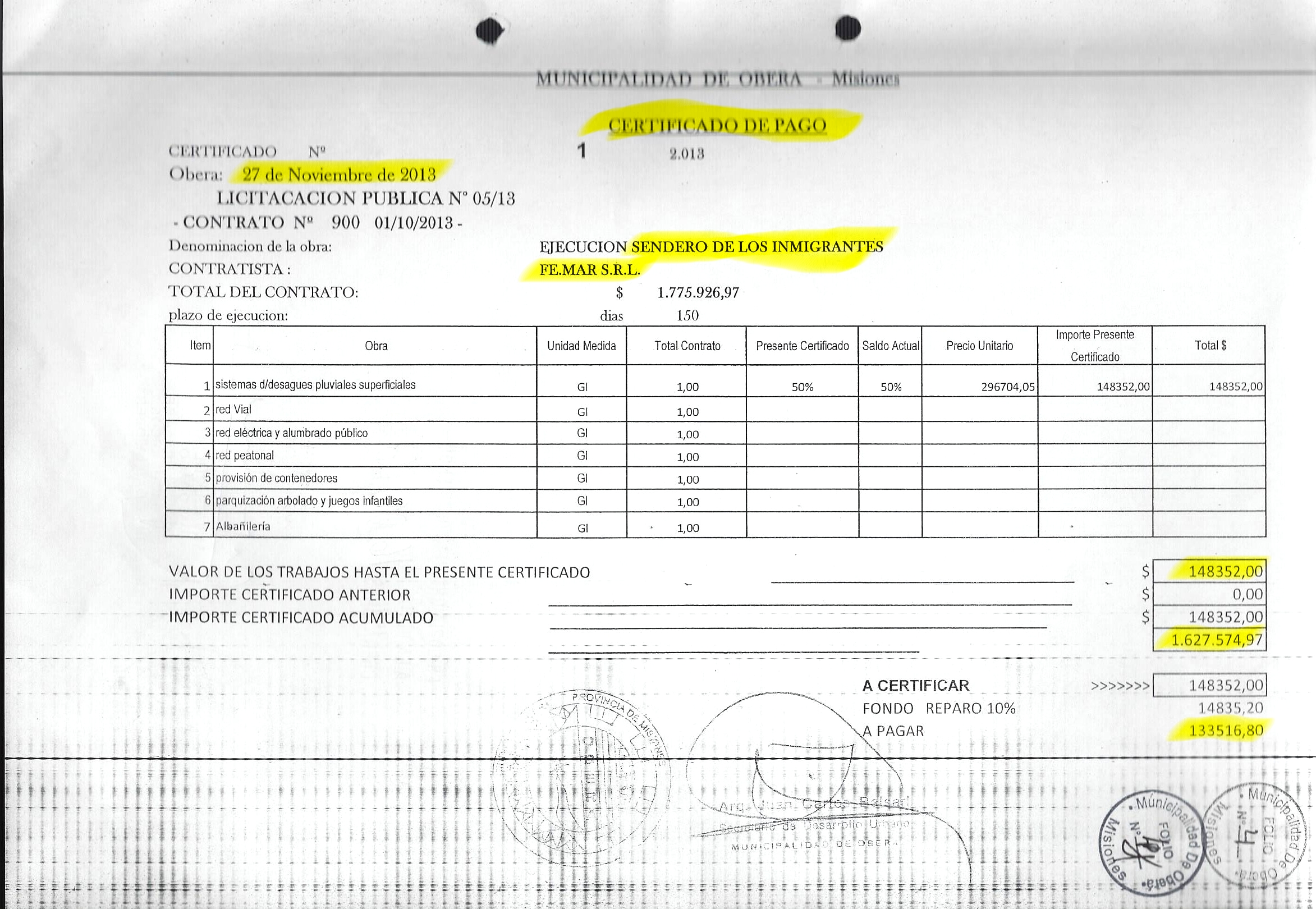 Aparecen facturas por $2,3 millones a la misma empresa que cobró $524 por «Sendero del Inmigrante» pero no hizo la obra