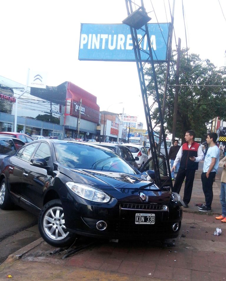 POSADAS. Sucedió sobre la avenida Uruguay al 3.800 (pasando la avenida Cabred), Luis, de 61 años de edad, debió ser trasladado al Hospital Madariaga por sus familiares, tras impactar contra una columna con su vehículo Renault Fluence cuando intentó esquivar a un peatón sobre la avenida e impactó primero contra un auto estacionado.