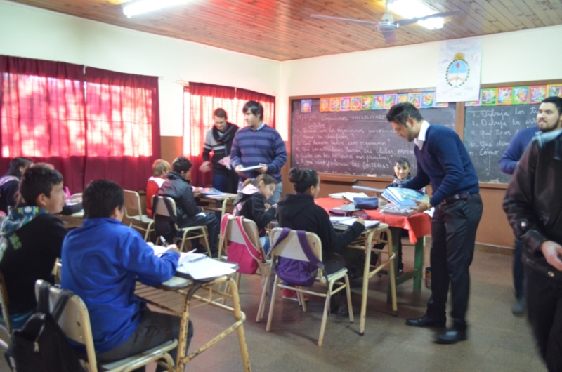 OBERA. Estudiantes de diferentes universidades de nuestra ciudad, acompañados por el Departamento de la Juventud, realizaron la donación de algunos útiles a los alumnos de la escuela primaria Nº688 del barrio Caballeriza.