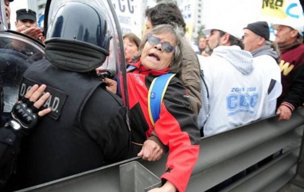 BUENOS AIRES. Jubilados fueron golpeados y sufrieron heridas leves mientras manifestaban este martes al medio día sobre el Puente Pueyrredón, Capital Federal, cuando agentes de la Policía Federal y la Prefectura avanzaron con carros hidrantes contra un grupo de integrantes del Movimiento Independiente de Jubilados y de la Corriente Clasista y Combativa (CCC). El reclamo era por un mayor incremento en los haberes, considerando muy bajo el 14,6 dispuesto por el gobierno de Mauricio Macri.