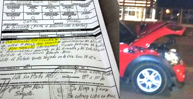 POSADAS. Según el acta labrada por la Policía en el lugar donde una adolescente de 15 años mató al motociclista Juan Francisco González frente a la terminal de la capital provincial sobre Av. Quaranta; el Mini Cooper no tenía seguro del automotor ni cédula identificatoria. La conductora, por ser menor de edad, tampoco tenía licencia habilitante y es penalmente es inimputable.