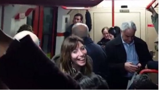 Los pasajeros se miraban risueños entre sí y hasta comentaban por las redes la insólita escena que estaban viviendo.