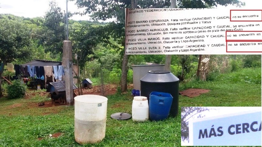 En el mismo, tras un relevamiento al 22 de junio, las cuatro obras de provisión de agua financiadas por el estado Nacional no funcionan, sumándose a otras seis fuera de servicio de las 20 perforaciones existentes.