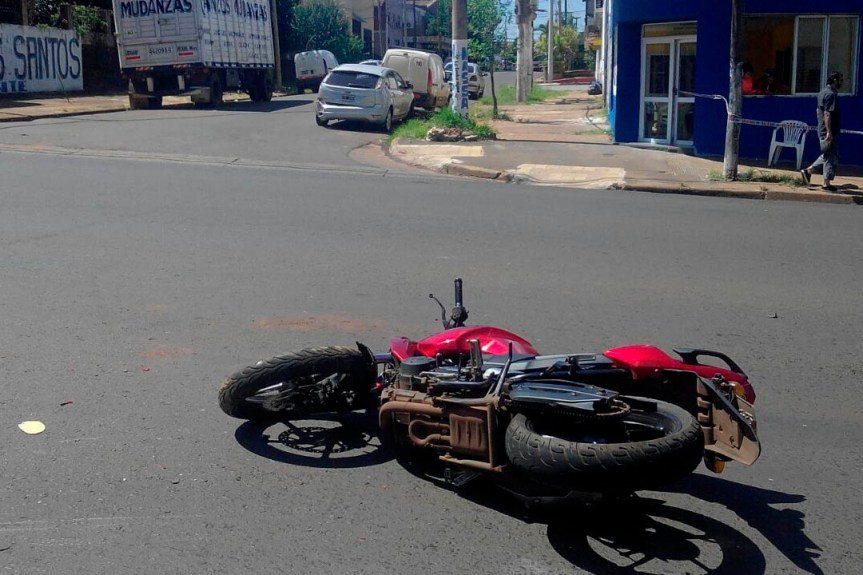 Motociclista ebrio chocó a un auto estacionado y se fue empujando