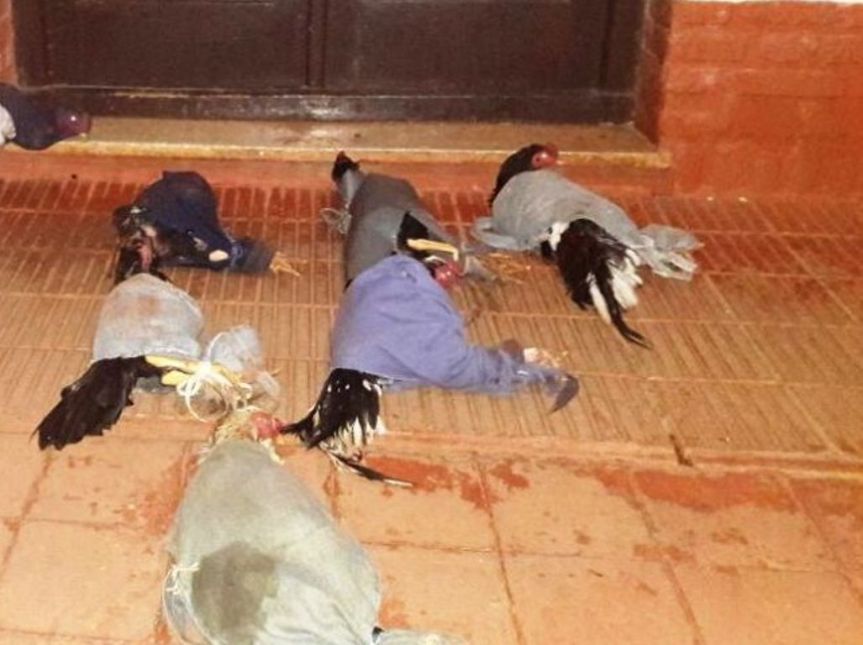 Las detenciones se concretaron en controles vehiculares. Los hombres a bordo de motocicletas, una Yamaha 125 c. c. y otra Honda C. G. 150 c.c., llevaban consigo cinco gallos de riñas, maniatados de las garras, y moribundos, además los rodados presentaban irregularidades para transitar.