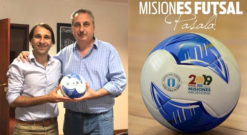La Confederación Argentina de Fútbol de Salón (CAFS) presentó al Ministerio de Deportes uno de los modelos de balón que será evaluado con vistas al Mundial Argentina 2019 que se jugará en Misiones. Pedro Bonettini, presidente de la Confederación, visitó al ministro y exhibió la pelota que tiene estampado el isologotipo de la cita mundialista que albergará la provincia. También estuvo presente el gobernador Passalacqua.