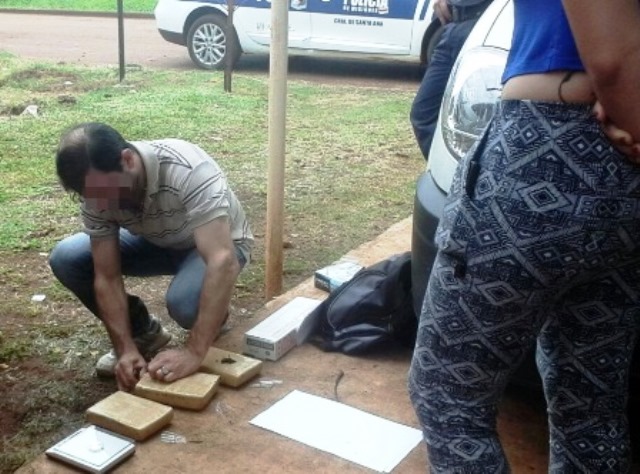 SANTA ANA. Isaac D.L. (58) salió a barrer la vereda esta mañana cuando se encontró con tres envoltorios con sustancia amarronada por lo que llamó a la Policía y fue la división Toxicomanía UR-XIII la que constató que se trataba de tres panes de marihuana (aprox. 2. 800 kg).