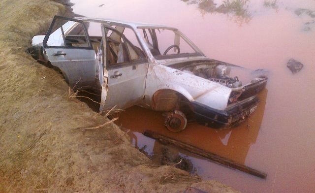 ELDORADO. El pasado domingo un automóvil marca VW Gacel, color gris y sin dominio colocado, fue abandonado por su conductor tras haber caído dentro de un bañado ubicado al final de la calle Coembotá del barrio Giacchino (Km. 3).