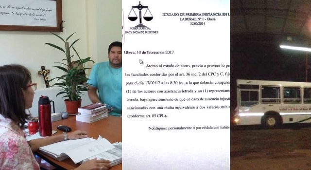 OBERA. El juzgado de Primera Instancia en lo Laboral a cargo de la Jueza María José Bustos citó para el viernes 17 de este mes, tanto a representantes de la empresa Capital del Monte como a los ex choferes despedidos en 2014. La cita en uso de facultades conferidas por el artículo 36 fijó audiencia obligatoria para el día 17/02 a las 8.30 horas a la deberán comparecer personalmente con asistencia letrada bajo apercibimiento de multas equivalentes a dos salarios mínimos en caso de ausencia injustificada.