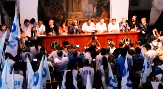 El primer orador fue el titular de UDA, Sergio Romero, quién tras sostener «la importancia del apoyo de la CGT a la lucha de los docentes» y, pedir «un nuevo financiamiento para la educación», precisó que «el ministro (Esteban) Bullrich debe renunciar».