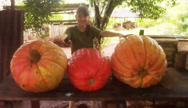 La joven contó que “uno pesó 54 kilos, otro un poco más de 30, y al resto no los pesamos”. Diana agregó que los zapallos son sanos y comestibles.