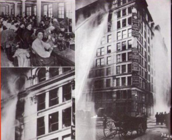 Algo después de una semana, el 25 de marzo, tuvo lugar el trágico Triángulo de Fuego en Nueva York. Alrededor de 140 trabajadoras, la mayoría jóvenes inmigrantes italianas y judías que trabajaban en la Triangle Shirtwaist Company, perdieron la vida debido a la falta de seguridad laboral. El sindicato Women’s Trade Union League y el International Ladies’ Garment Workers Union organizaron muchas de las protestas contra esta tragedia, que pudo haber sido evitada, entre las que destaca el desfile funerario silencioso, que reunió a una multitud de unas 100.000 personas. El Triángulo de Fuego tuvo una gran repercusión en la legislación laboral; las terribles condiciones laborales que provocaron este desastre fueron evocadas en posteriores celebraciones del Día Internacional de la Mujer.