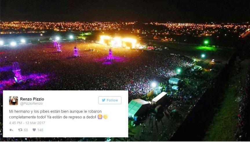 El momento en que el ex líder de Patricio Rey y sus Redonditos de Ricota detiene su show fue registrado por un asistente que se encontraba transmitiendo a través de Periscope. «El Indio está llamando a gente de seguridad porque hay gente desmayada en el piso», comentaba el usuario a quienes lo estaban siguiendo en vivo. Mientras, Solari decía: «Hay mucha gente ahí, hay que tener mucho cuidado».