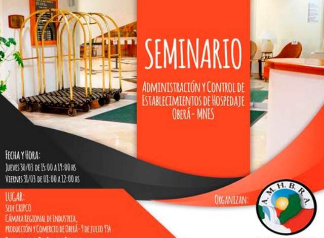 OBERA. La Cámara de Comercio invita a participar del curso “Seminario “Administración y Control de Establecimientos de Hospedaje«, organizado por la Asociación Misionera de Hoteles, Bares, Restaurantes y Afines (AMHBRA) en conjunto con el Departamento de Capacitación y Formación Profesional de FEHGRA, con el apoyo de la CAME, CEM, CRIPCO y la Dirección de Turismo de la Municipalidad de Oberá.