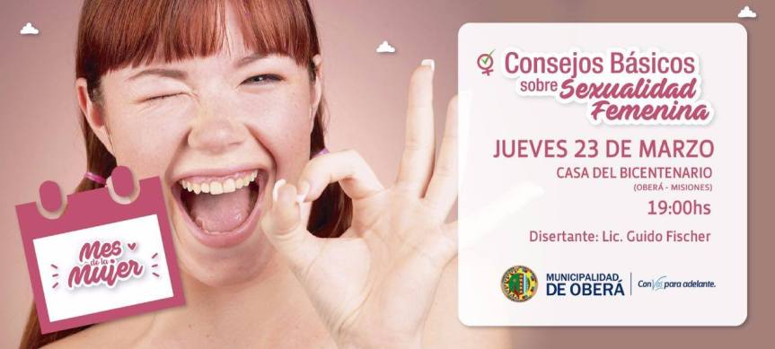 OBERA. Este jueves 23 a las 19 horas, se realizará una disertación sobre «Consejos Básico sobre la Sexualidad Femenina» a cargo del licenciado Guido Fischer y con el apoyo de la municipalidad de Oberá en la Casa del Bicentenario.