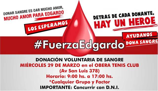 OBERA. En un llamado a la solidaridad, se necesitan 250 dadores de sangre de cualquier grupo y factor para el conocido entrenador Edgardo Paiva de 35 años que se encuentra internado en el hospital Madariaga.