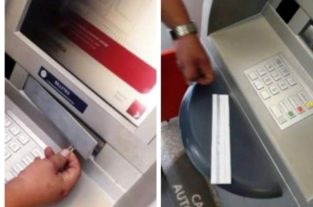 1. Un integrante de la banda instala en la ranura del cajero automático un dispositivo de los denominados pescadores, que es una especie de cobertor plástico con la forma de la tarjeta y con una apertura que queda del lado de quien lo instala.