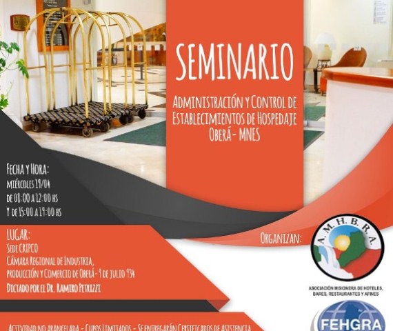 OBERA. El curso de capacitación “Administración y Control de Establecimientos de Hospedaje basados en USALI” se realizará el miércoles 19 de abril, de 8 a 12 y de 15 a 19 horas, en la sede de la CRIPCO, 9 de Julio 934, deOberá.