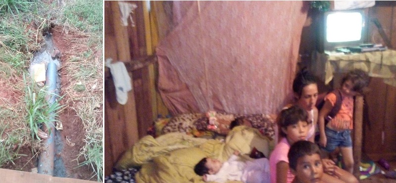 Marli Emke, dirigente de Tareferos El Mensú contó a este medio que debió asistir con algunos elementos a la mujer que vive con sus cinco hijos en un espacio reducido, uno de ellos es un bebe de 4 meses y con la rotura del caño de cloacas del barrio San Miguel, su vivienda está siendo contaminada. Además se encuentra en la parte baja, contra el arroyo al final de la calle 6, una zona inundable.