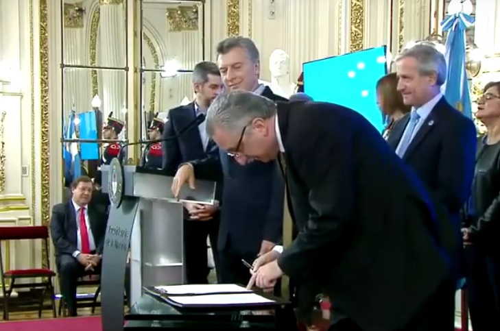 Firmaron el documento en el Salón Blanco de la Casa Rosada los gobernadores María Eugenia Vidal (Buenos Aires); Lucía Corpacci (Catamarca); Ricardo Colombi (Corrientes); Gildo Insfrán (Formosa); Gerardo Morales (Jujuy); Hugo Passalacqua (Misiones); Omar Gutiérrez (Neuquén); Alberto Weretilneck (Río Negro); Juan Manuel Urtubey (Salta); Sergio Uñac (San Juan); Claudia Ledesma Abdala (Santiago del Estero) y Juan Manzur (Tucumán), y el vicegobernador de Chubut Mariano Arcioni.