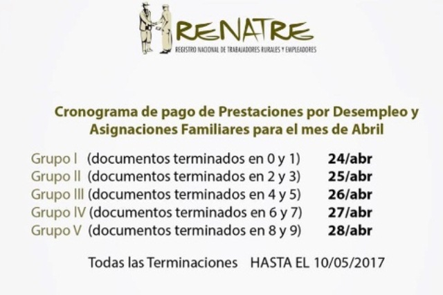 MISIONES. La delegada del Registro Nacional de Trabajadores Rurales y Estubadores (RENATRE) en Misiones, Wilma Andino, detalló que la prestación se abonará a todos los trabajadores que estuvieron registrados, dados de alta en AFIP, inscriptos en el Registro Nacional y quedaron desempleados. La inscripción de los trabajadores es obligatoria según la ley nacional 25.191, como también la de los empleadores o contratistas. «La registración es absolutamente independiente de la afiliación del trabajador a un sindicato», señaló la funcionaria.