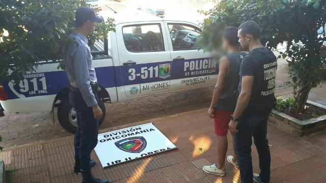 OBERA. La división Toxicomania de esta ciudad demoró el sábado a la tarde a un adolescente de 16 años, y en su poder incautó 12,5 gramos de marihuana, que estaban acondicionados en dos envoltorios. El procedimiento se enmarcó en la tarea de prevención que lleva adelante la mencionada unidad especial junto a otras dependencias de la Unidad Regional II de Oberá.