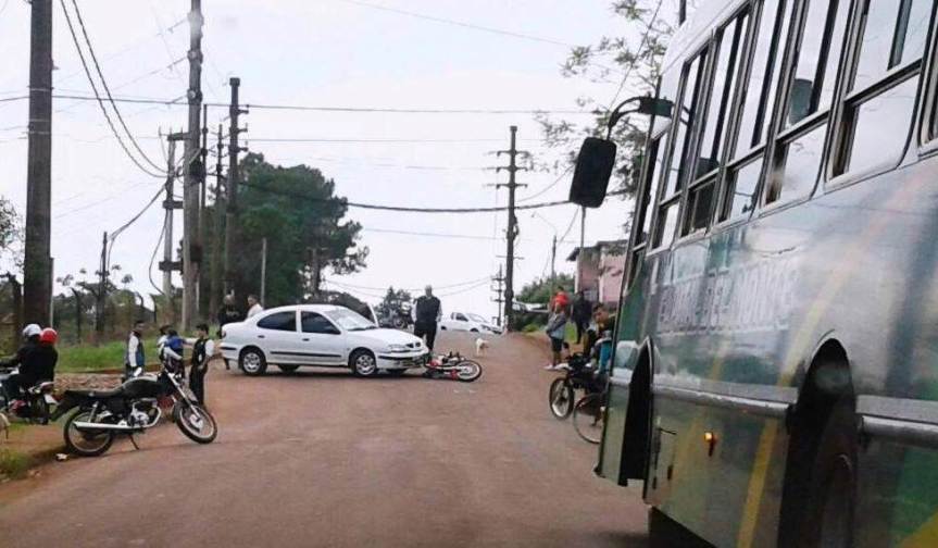 Según las primeras informaciones, un auto marca Renault Megane que aparentemente salía de calle Río Cuarto, colisionó con una motocicleta conducida por una mujer que debió ser atendida.