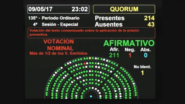 La Cámara de Diputados aprobó hoy por amplia mayoría y envió al Senado el proyecto de ley para bloquear cualquier posibilidad de reducción de penas a los condenados por delitos de lesa humanidad, en una clara respuesta a la interpretación que hizo la Corte Suprema al aplicar el 2×1 a favor del represor Luis Muiña.