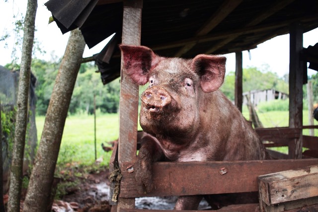 En inmediaciones de la vivienda encontraron 2 animales porcinos de 300 kilogramos cada uno, al parecer los estaba alimentando cuando ocurrió el ataque que lo dejó desangrando.