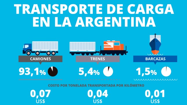 La comparación de costos entre un medio y otro no deja lugar a confusión: mientras el valor por tonelada transportada por kilómetro en tren es de US$ 0,04, en camiones asciende a US$ 0,07. Cada punto porcentual del transporte de carga transferida del camión al tren representaría un ahorro anual de 70 millones de dólares.