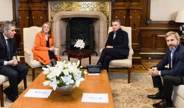 Durante la reunión, que duró unos 40 minutos en el despacho presidencial, estuvieron presentes, además de Macri y la gobernadora, el vicegobernador Pablo Gónzalez y el ministro del Interior, Obras Públicas y Vivienda Rogelio Frigerio.