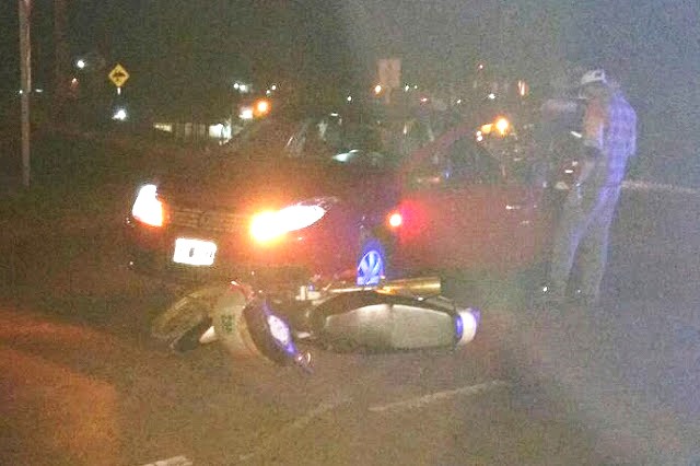 SAN VICENTE. Fue poco antes de las 19:45 del viernes cuando un Renault Simbol conducido por Samuel P. (28) impactó una motocicleta Keller 110 conducida por Susana S. (29), acompañada por una niña de 6. Fue en la Rotonda Oeste de San Vicente, intersección Avenida Néstor Kirchner y Ruta Provincial 13.