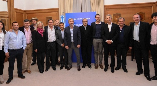 BUENOS AIRES. El ministro de Interior, Obras Públicas y Vivienda, Rogelio Frigerio, junto al subsecretario de Obras Públicas, Jorge Sábato, y el vicegobernador de Misiones, Oscar Alberto Herrera Ahuad, firmaron un convenio con ocho municipios de la provincia que se incorporan al Plan de Renovación Urbana, entre ellos el intendente Carlos Fernandez.