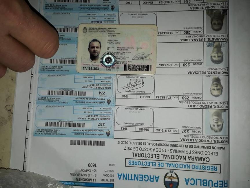 El cuadro con su foto y DNI estaba firmado por otra persona. Pedro Julio Muster, DNI 17.135.353, denunció en su cuenta de Facebook donde manifestó: