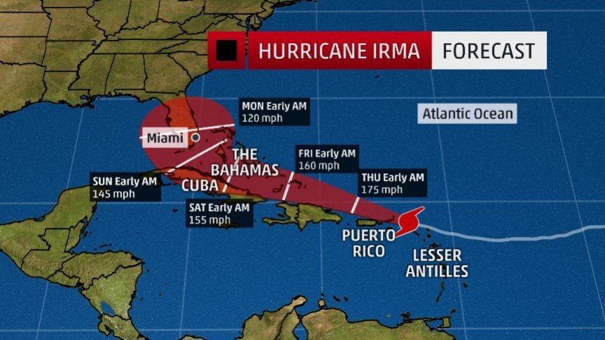 Se prevé para el final de semana que llegue a la costa de Florida donde el gobernador, Rick Scott, declaró el “estado de emergencia en los 67 condados», mientra el gobierno francés pidió a los habitantes de sus territorios de ultramar que no abandonen sus casas.