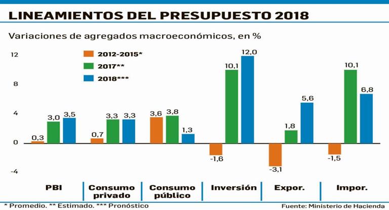 La proyección de ingresos públicos para 2018 incluye un aumento de 19% con relación a este año. En el mismo lapso, el gasto primario -que no contempla el pago de los intereses de la deuda- crecería 14,8%.