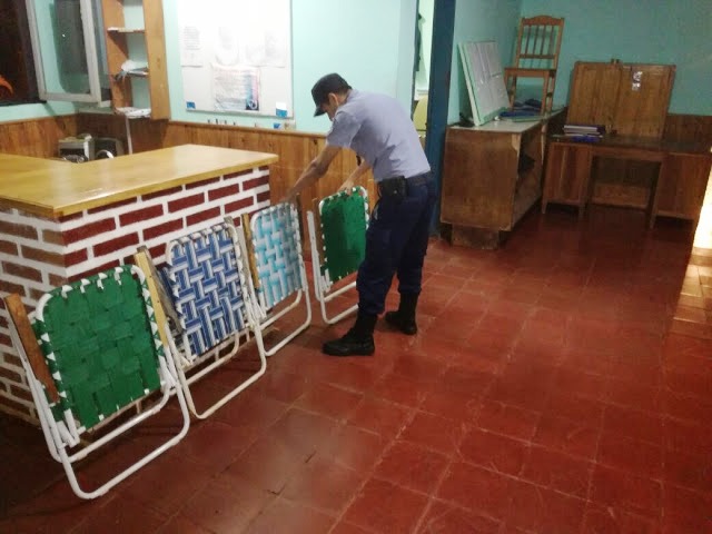 DOS DE MAYO. El lunes por la tarde, Fabián S. (38) y Ramón A. (20) fueron arrestados por el robo de cinco sillones plegables, sustraídos de la galería de una vivienda ubicada en Ruta Nacional 14 (km 962). Los mismos estaban en manos de dos malvivientes en inmediaciones del ilícito, precisamente en B° Bernardino Rivadavia.