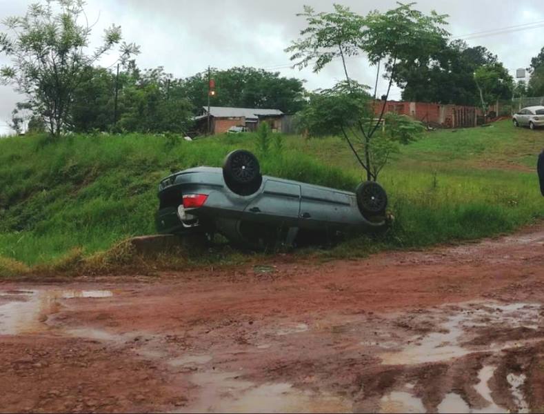 SAN VICENTE. El hecho vial se registro cerca de las 08:40 horas, en el kilómetro 973 de la Ruta Nacional 14, donde personal de la Comisaría Seccional 2° de esta localidad constato que por causas que se tratan de establecer un vehículo Volkswagen Voyage conducido por JAVIER R. B. (37) quien iba acompañado de su concubina PAMELA B. G. (33), como así dos niños de entre 03 y 06 años de edad, momentos en que circulaba en sentido San Vicente -Dos de Mayo al llegar a la altura del Kilómetro mencionado pierde el control del vehículo despistando hacia la banquina contraria quedando el mismo en posición invertida.