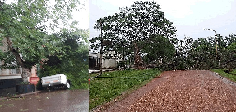 En Santo Tomé, la situación es complicada, están sin luz desde las 10 del día anterior de este jueves, con árboles y postes caídos. Alrededor de 10 casas sufrieron la voladura de techos. Además la antena de FM de Radio Nacional cayó, hay alrededor de 10 cables cortados por árboles y postes caídos.