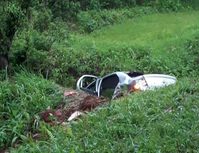 Los dos estaban bien y conscientes, pero mientras le sacaban del auto otro despiste ocurrió. Un VW Voyage en el que viajaban un matrimonio y una menor de 14 años salió precipitado de la ruta y quedó sumergido parcialmente en una corriente de agua, aparentemente un arroyo. Todos quedaron inconscientes dentro del coche, mientras el agua avanzaba y se llevaba el coche.