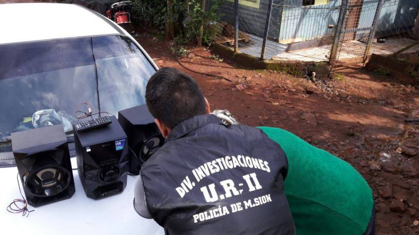 OBERÁ. Recuperan un equipo de música robado en julio: lo vendió un joven detenido por hurto de motocicleta. Tras una paciente pesquisa la división Investigaciones, dependiente de la Unidad Regional II, recuperó un equipo de audio que fue robado el pasado 29 de julio en esta ciudad. Dicho elemento fue comercializado presuntamente por Alan Emanuel D.S. (20), un joven con frondoso prontuario por delitos contra la propiedad, y que el último sábado fue detenido en Campo Ramón mientras circulaba con una motocicleta robada ese mismo día en Oberá.