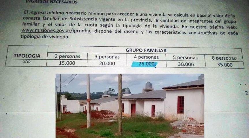 Ahora, el grupo familiar es de 4 personas, deben ganar 25 mil pesos, 5 personas 30 mil y 6 integrantes, 35 mil para que les entreguen las viviendas, dándoles unos pocos días para justificar estos ingresos o perderán las viviendas. En declaraciones al diario Primera Edición, Santiago Ros, titular del Iprodha justificó la requisitoria se calcula sobre la canasta básica (actualmente en 15 mil pesos), más el valor de la cuota.